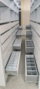 Разработали индивидуальный проект расстановки стеллажей. Установили стационарные и мобильные стеллажи с механическим управлением. Внутреннее устройство стеллажей спроектировано относительно хранимого.