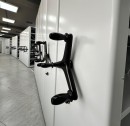 Стеллажи были спроектированы и произведены с учетом полукруглой формы и узости пространства, что позволило эффективно использовать каждый сантиметр рабочей площади и вдвое увеличить объем хранения.