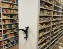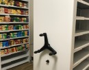 Передвижные стеллажи позволили задействовать весь доступный объём помещения, а индивидуальный стационарный стеллаж использовал ранее пустующую нишу.
