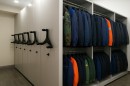 Мобильные стеллажи позволяют безопасно и компактно хранить одежду, эффективно используя пространство склада или хранилища.
