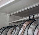 Штанги можно разместить на разных уровнях. В результате длинная одежда хранится отдельно, не соприкасаясь с короткой, что помогает избежать сминания и повреждений.