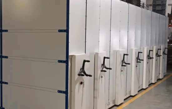 Этот тип автоматизированных передвижных стеллажей для склада оснащен электроприводом и управляется компьютерной АРМ системой. Это современное и технологичное решение.